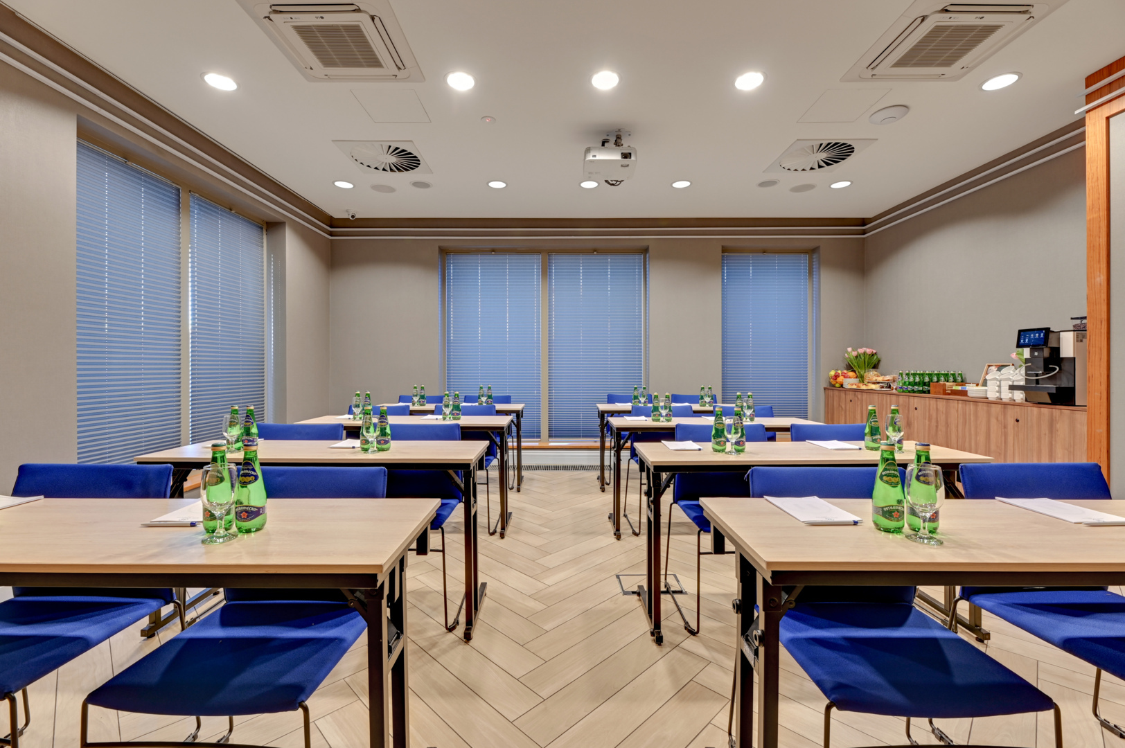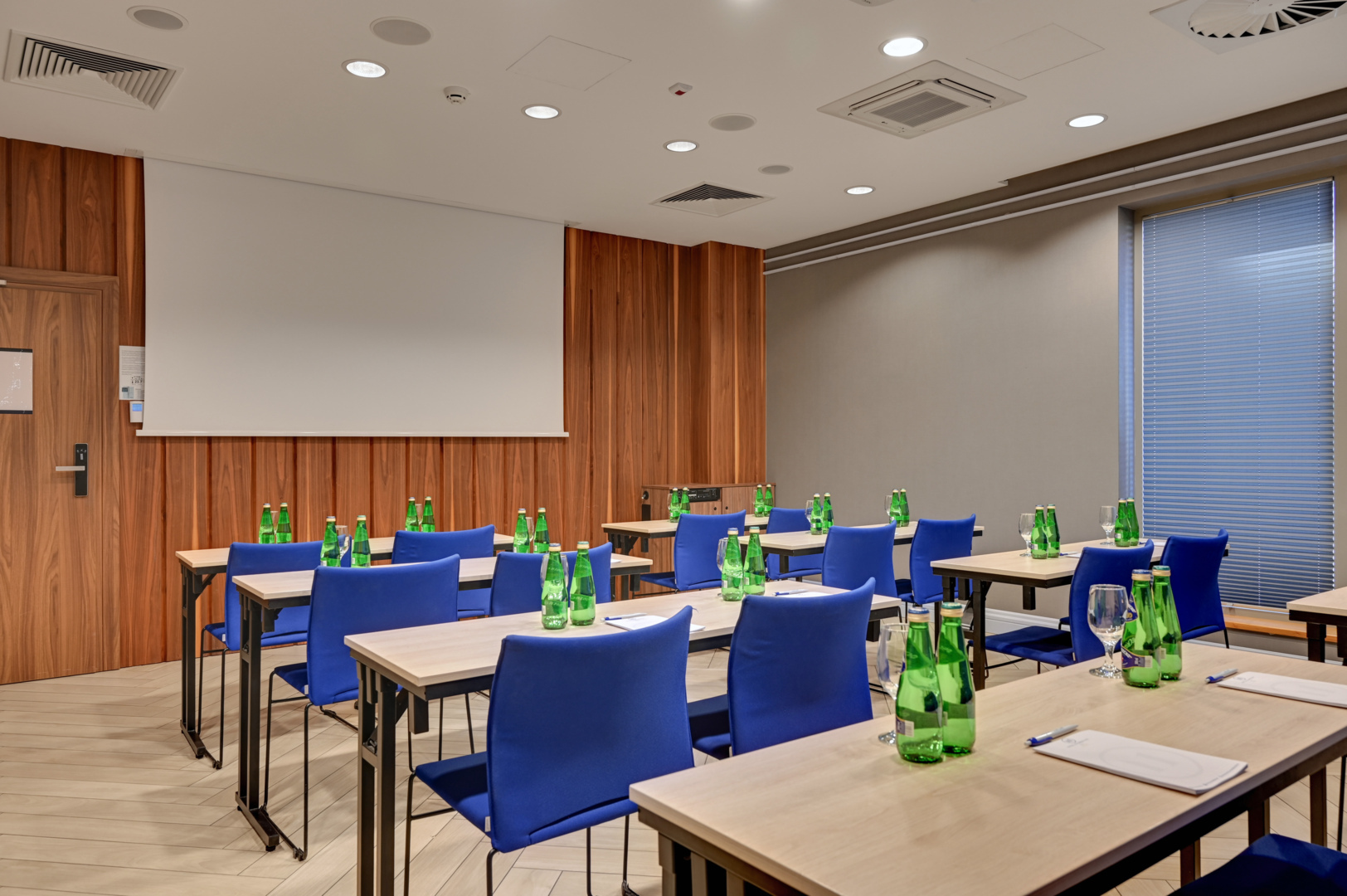 Kameralna sala konferencyjna sprawdzi się jako miejsce organizacji spotkań biznesowych. Wyposażenie sali obejmuje m.in. klimatyzację, bezprzewodowy internet, ekran, rzutnik oraz system nagłośnienia wraz z mikrofonami bezprzewodowymi. Sala konferencyjna Grano Life*** Gdańsk pomieści jednorazowo do 50 osób. Istnieje możliwość całkowitego zaciemnienia sali.